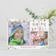 O título "Feliz e Brilho" está em uma fonte divertida e moderna de tipografia em uma mistura de cores brilhantes e festivas de verde limão, vermelho de framboesa, azul-claro, rosa e verde-claro que se coordenam com a sequência de luzes de férias que disparam duas de suas fotos favoritas que você quer compartilhar nesta temporada de festas. (DICA DA FOTO: para obter resultados mais rápidos/melhores, escolha uma foto com o assunto no meio e/ou faça um pré-recorte para uma forma semelhante, conforme mostrado ANTES de carregar e ela preencherá o espaço de fotos fornecido perfeitamente.) Entre em contato com o designer se você quiser que este design seja modificado ou em outro produto. O verso tem um padrão de bolinhas alegre em um esquema de cores de coordenação.