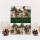 Um cartão multifotografia moderno e elegante para os recém-casados celebrando seu primeiro Natal juntos como marido e mulher apresentando um texto manuscrito que diz "feliz e casado" com estrelas. O fundo é verde.