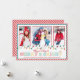 Cartão de saudação popular e tradicional de natal de natal para três fotos da família com uma série de luzes de natal com o ditado "Que seus feriados sejam felizes e brilhantes em um fundo branco e vermelho de faixa com uma borda azul vermelha e turquesa. A parte de trás da nossa única placa de natal fotográfica apresenta um fundo de faixa vermelha e branca. Uma bela árvore de natal de natal, um cartão de natal, para mostrar sua linda família que seus filhos vão amar!