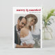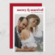 Amor e Festividade Unir: Cartão de Natal 'Feliz e casado' Celebra a alegria de ser 'Feliz e casado' com o nosso cartão de Natal especialmente trabalhado, desenhado para casais marcando seu primeiro Natal juntos como um par casado. O cartão exibe um design moderno, minimalista, com um toque de sotaques vermelhos festivos, com uma foto carinhosa das recém-casadas. Minimalismo Festivo: A design moderna e minimalista assume um sentimento quente e convidativo com a adição de sotaques vermelhos festivos. Ela enfatiza a beleza do momento e irradia o espírito de feriado. Um momento para comemorar: seu primeiro Natal como casal casado é um marco especial. Esta carta é um reflexo dessa jornada — um lembrete do amor que você compartilhou e dos momentos maravilhosos que você criou juntos. Perfeição Fotográfica: A inclusão da sua foto favorita como elemento central da carta adiciona um toque pessoal que captura a essência do seu amor. É um retrato da sua felicidade e união. Saudação Personalizada: Dentro do cartão, você tem a oportunidade de adicionar uma mensagem personalizada. Compartilhe seu amor, seus sonhos, e sua entusiasmo pelos Natal ainda por vir. É uma chance de fazer este cartão exclusivamente seu. Primeiro de Muitos: Este cartão não é só para um Natal; é um guardião do seu primeiro Natal juntos. É um lembrete do amor que você compartilha e da jornada em que você embarcou. Marque sua 'Feliz & casado' primeiro Natal com elegância, estilo e um toque de encanto festivo. Peça seu cartão especial de Natal hoje e comemore o amor e a união que descobriram um no outro. Celebre o amor que encontrou com uma carta tão eterno como seu compromisso, agora com um toque festivo. Peça seu cartão de Natal hoje!