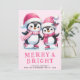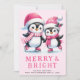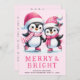 Cartão De Festividades Feliz e Pinguim Brilhante Pecadores de Gelo Rosa