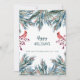 Cartão de cumprimentos de férias de inverno em estilo rústico moderno com ramos de pinheiro nas tendências azul naval, verde-teal e caçador, frutos de azevinho e dois pássaros cardeais vermelhos junto com votos de "Felizes Festas" em tipografia script editável e seu nome / assinatura. +++++++++++ Uma maneira simples de enviar seus cumprimentos de Natal para familiares ou parceiros corporativos de negócios. ++++++++++ O cartão tem uma cor rosada suave no verso para permitir que você - se desejar - adicione algumas linhas manuscritas pessoais e assinatura.