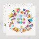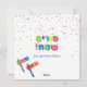 Feliz cartão de saudação Purim, convite. Tradução do hebraico: Feliz Purim! Poster de Férias Judaicas de Purim com estrelas de David, biscoitos tradicionais de Hamantaschen, barulheira de brinquedo mais gracioso, balões, músicos, máscaras, cesta de Purim sobre fundo de confete festivo. Deseje uma celebração de excelente Purim. Carnaval, Mascarada, Festival, Partido Crianças, Israel. Convites e papelaria > Cartões de saudação > Cartão de presentes de férias e sazonais. Design com modelo de texto. Personalize-os adicionando nome ou texto de desejos.