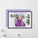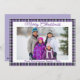 Feliz Natal, foto da família de tartã roxa, Holiday Card com dois lados, no verso da mensagem de feriado.