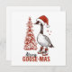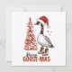 A design de "Feliz Goose-mas bonitinho" retrata um ganso bonito vestindo um chapéu de Papai noel, botas vermelhas e uma árvore de Natal ao fundo. Este design de gansos de xmas coloridos e atraentes faz um belo presente de Natal para qualquer pessoa que goste de gansos, animais e imagens engraçadas de Natal.