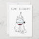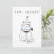 Cartão De Festividades Feliz Gato de Aniversário com Vidro de Vinho. Engr