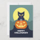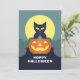 Cartão De Festividades Feliz Halloween Gata Preta e Abóbora