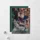 Este simples e elegante cartão de Hanukkah diz "Feliz Hanukkah" em uma mistura de texto moderno em negrito e caligrafia clássica, sobre uma sobreposição de foto sobre sua foto de família favorita. O verso do cartão é uma cor verde esmeralda escura.