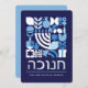 Hanukkah / Cartão Azul Branco Moderno Geométrico com Folha Silver Foil. Menorah, Dreidel, Rosquinhas, estrelas e azeite... Símbolos hebraicos e judeus de Hanukkah + espaço para adicionar seu texto personalizado na frente e ao contrário. Feliz desejo Hanukkah. Hebraico na frente diz "Chanukah". Esta bela, bela, olha, é uma forma excelente de desejar aos amigos, à família e aos clientes, um Hanukkah/Chanukah muito feliz. Se quiser ver uma variação deste design, envie uma mensagem de correio eletrônico para BestDressedBread@gmail.com.