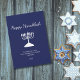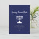 Feliz cartão de Cartões de natal Azul Hanukkah, com uma simples menorah branca e design de tipografia de script. Com a inscrição personalizável branca, você pode adicionar suas próprias informações. Uma forma festiva de enviar bons desejos aos amigos e entes queridos.