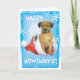 Envie Cartões de natal com este cartão de um filhote de limpador de limpador de limpidez sentado em um chapéu de Papai Noel, entre flocos de neve e as palavras, Feliz Feliz Feliz Howlidays! Excelente para a família e amigos amantes de Borda Terrier. Tenha um Feliz Howliday!