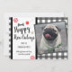 Fundo Gingham com uma opção de fotografia quadrada. Diversão feliz como o cartão de Natal de estimação uma foto. Fácil de ajustar. Basta mudar os nomes da família e adicionar sua própria foto à frente do cartão.