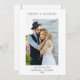 Esta feliz moderna e o novo cartão de feriado fotográfico casado é o perfeito cartões de natal simples para um casal recém-casado. O design moderno mostra sua foto favorita com o texto "Feliz e casado" na popular tipografia negra. Abaixo está o texto "Feliz Natal de", com seus nomes e ano. #natal #feriados #sazonal #festivo #recém-casados #casamento #casamento #feliz #casado #moderna #trendy #fotografia #fotos #adyourown #trendy #tendências #estilo #na moda #simples #elegante #design #designer #doitsi #diy