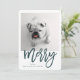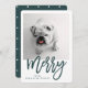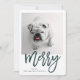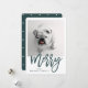Este cartão de Natal simples e na moda diz "feliz" na tipografia teal moderna, com um ponto para sua própria foto pessoal e saudação.