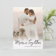 Aproveite o tempo deste ano para criar um belo e personalizado cartão de Natal Casal. Apresentando um fundo branco minimalista, um modelo de foto, o título "mais alegres juntos", seus nomes e o ano. Na parte de trás, deixa espaço para uma mensagem sincera de você para a família e amigos.