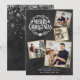 Um design de férias de colagem de fotos 4 boho para você personalizar com suas fotos favoritas emolduradas em ouro, mensagem, nomes e ano em um fundo de quadro negro. O verso apresenta flocos de neve caindo em um fundo de quadro negro correspondente. Criado por Thisisnotme©