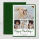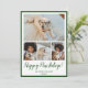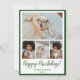 Este belo cartão de Natal de colagem fotográfica com 4 fotos, Feliz Natal em uma fonte moderna com script de pincel, um sentimento personalizável, seus nomes e o ano seriam perfeitos para enviar para seus amigos e família. Todos adorarão tirar novas fotos de você e do(s) seu(s) cachorro(s). As fontes são modernas e limpas em verde. O fundo é um verde coordenador.