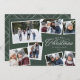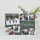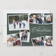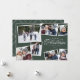 Este cartão de férias de sete fotos contém um elegante tratamento do tipo Feliz Natal e espaço para texto personalizado. A colagem de fotos faz dele um cartão de Natal para a família perfeito para compartilhar os destaques do ano ou o melhor de uma sessão de fotos da família. As cores verde e branca caçadoras são festivas e a variedade de formas fotográficas o tornam versátil. A parte de trás é um verde que combina com um padrão simples de xadrez. Coordenando os acessórios de correio também disponíveis na coleção de Roteiros Elegantes de Natal do Design de Lea Delaveris.
