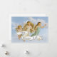 Três anjos e uma pomba branca voam através do céu azul brilhante com uma faixa proclamando "Feliz Natal para todos" nesta ilustração antiga. Também disponível como download digital para uso pessoal.