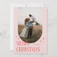 Cartão com fotos timítico e mínimo de férias com um quadro de arco cor-de-rosa com um texto de tipografia que diz "Feliz Natal". Você pode adicionar um total de 3 fotos neste cartão na frente e atrás.