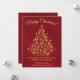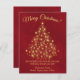 Este belo cartão de Natal apresenta uma design simples, na moda, sofisticada e elegante, com uma árvore de Natal estilizada feita de estrelas ouros e luzes sobre um fundo vermelho marmoreado e profundo. A legenda diz: Feliz Natal! Há espaço para uma breve saudação e sua assinatura. É uma maneira maravilhosa de enviar alegria de férias.