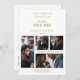 Cartão de Natal "Merry Christmas" Branco e Dourado Simples Clássico com 4 Fotos em Colagem para Salvar a Data com Envelope.