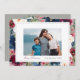O elegante e moderno design de um cartão de férias "Feliz Natal" de inverno apresenta uma foto horizontal moldada por um padrão floral de cor aquosa rica com Bordeaux / burgundy red, marinho azul, rosa e natas com fundo de cinza de platina. A parte de trás do cartão contém uma segunda foto quadrada moldada por um floral coordenador.