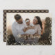 Cartão de Natal de xadrez de búfalos elegante com um falso título de caligrafia em folha de ouro, neve, estrelas e luzes brilhantes sobre uma foto na frente e um fundo de xadrez de búfalos preto e caqui com névoa de folha de ouro falso nas costas. Personalize facilmente este cartão de Natal com fotos cintilantes com sua foto e o nome da família. ESTE CARTÃO FUNCIONA MELHOR COM FOTOS ESCURAS.