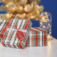 Esta design apresenta uma fotografia clássica de Natal Feliz, com um roteiro de caligrafia em na moda, um roteiro de prata, uma imagem de família tradicional, uma classe mínima minimalista simples, com um modelo de 1 layout de fotografia, um cartão de feriado horizontal de cheio, com tipografia clássica de caligrafia de rico, com um padrão de xadrez de inverno azul, vermelho e verde claro, um cartão de saudação de Natal elegante, elegante clássico sofisticado cartão com fotos