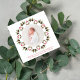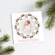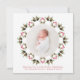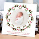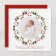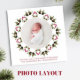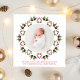 Esta design apresenta um feliz Natal, uma foto, uma simples tipografia vermelha e verde, fofa, uma coroa clássica minimalista, uma folhagem botânica elegante, um verde vermelho sagrado, um cones de pinheiros de inverno rústicos, um mínimo de cartões com fotos de férias
