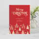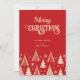 Feliz natal saudações de cartas de fundo vermelho com árvores de Natal estilizadas bege e e flocos de neve estilo retro século médio modelo convite instantâneo