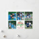 Compartilhe amor e alegria nesta época com o cartão de Natal Merry Christmas Family Photo Collage Holly Berry Holiday Card! O design rústico e festivo apresenta uma tipografia Merry Christmas em vermelho e verde ousados, cercada por folhas de azevinho, estrelas douradas cintilantes e flocos de neve delicados em um fundo branco crocante. Personalize com o nome da sua família, ano e até 5 fotos queridas para criar um presente sincero. No verso, adicione sua mensagem de Natal e os nomes da família para um toque extra de personalização. Perfeito para reuniões festivas, enviando votos calorosos e celebrando a época de Natal com estilo.