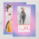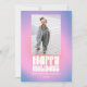 Este cartão de férias divertido apresenta um fundo degradê ousado de rosa para roxo com letras retrô borbulhantes que dizem “Boas Festas”, além de espaço para uma foto e nome personalizado. A paleta vibrante e a tipografia inspirada nos anos 70 tornam-no perfeito para famílias que amam cor, criatividade e design ousado. Ótimo para enviar alegria festiva com um toque moderno e divertido.
