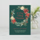 Um cartão de Natal elegante para enviar e deixar seus amigos e família saberem seu novo endereço. Este belo cartão de feriado em verde verde profundo tem uma bela coroa de vergreens, poinsettias e rosas. Todo o texto deste cartão pode ser personalizado com o texto desejado. A parte de trás do cartão tem uma bela cena de inverno ao ar livre e texto adicional para felicitar a design.