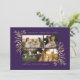 O Natal mais feliz Desejo 4 Cartão de Natal de Feriado Floral de Foto Botânico apresenta a sua foto favorita na frente com o texto "Desejos do Natal Mais Feliz" na tipografia do roteiro de caligrafia dourada moderna em fundo roxo e personalizado com seu nome de família abaixo. No verso está um elegante padrão botânico de ouro. Perfeito para mandar para a família e amigos no Natal e nos feriados. Criado pelo Evco Studio www.zazzle.com/store/evcostudio