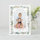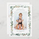 Este elegante cartão de feriado fotográfico apresenta uma moldura de Natal em aquarela adornada com bagas ocas, ramos de pinheiro e verde botânico, com uma foto e texto adicionais no verso. Mande alegria de Natal para a família e amigos.