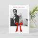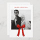 Cartão de Natal bonito com um design simples e minimalista com um arco vermelho sobre a parte inferior da sua foto quadrada favorita. No topo está a saudação "Feliz Natal". Use a modelo para adicionar sua mensagem personalizada.