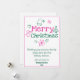 Brincadeiras De Natal, Um Cartão De Férias Rosa E Verde. Personalize com seu nome de família e saudação.