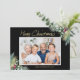 Este Cartão de Natal de na moda é decorado com folhagem festiva de aquarela e bagas em vermelho, verde e ouro sobre fundo preto. Facilmente personalizável com seu nome e foto. Porque nós criamos a nossa trabalho de arte, você não encontrará esta imagem exata de outros designers. Original Watercolor © Michele Davies.