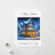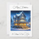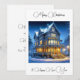 Lindo cartão de Natal personalizado com uma casa vitoriana iluminada.
