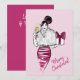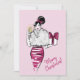 Ilustração de moda lindamente desenhada contra um fundo rosa. Com um copo de champanhe em uma mão e um presente de Natal na outra, ela gostaria de celebrar o Natal com você e brindar a um ano novo feliz.