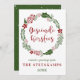 Coroa de Natal verde e vermelha em cartão de Natal, com as palavras Feliz Natal em Afrikaans: Geseënde Kersfees.