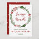 Coroa de Natal verde e vermelha para cartão de Natal, com as palavras Feliz Natal em Crioulo Haitiano: Jwaye Nowèl.
