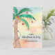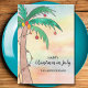 Você está celebrando o Natal em julho deste ano? Este cartão de Natal divertido é decorado com uma palmeira de Natal desenhada à mão e fundo aquoso colorido. Facilmente personalizável. Original Watercolor © Michele Davies.
