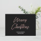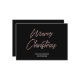 Um cartão de Natal elegante, preto e rosa de ouro falso, com "Feliz Natal" na frente. Personalize com seu nome ou nome da família e o ano.