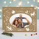 Feliz Natal Férias Natal Foto Woodland Doodle Foliday Cartão de Natal apresenta a sua fotografia favorita rodeada por lindos animais florestais e elementos florais de inverno e todos amarrados com um arco de coquete caprichoso com o texto "Desejar-te um feriado feliz" em tipografia moderna, num fundo de ouro, e personalizados com o seu nome de família. Perfeito para família e amigos no Natal e feriados. Criado pelo Evco Studio www.zazzle.com/store/evcostudio #zazzlemade #zazzle #evcostudio #christmascards #holidaycards #photochristmascards