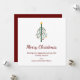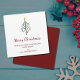 Feliz cartão de Natal, com uma simples árvore verde decorada com ornamentos e design de tipografia vermelha. Com a inscrição personalizável, você pode adicionar suas próprias informações. Uma forma festiva de desejar aos seus amigos e família as bênçãos da estação.
