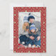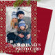 Um padrão vermelho de Floco de Neve, inspirado nos nórdicos, com vermelho contra o fundo da cinza. Um estilo elegante para feriados e Natal. Este simples Cartões de foto de Natal Holiday apresenta um cheio sangrado com uma borda branca. Uma tenda e moderna rústica saudação de Feliz Natal no lado frontal ajustados 1 Foto. Esta design apresenta um floco de neve vermelho de Natal inverno, foto de família 1 uma foto, cartões de Natal, design tradicional de inverno clássico, mínimo elegante e simples minimalista, roteiro de caligrafia na moda, texto tipográfico branco, citação de Natal alegre dizendo simples, vermelho e verde, cartões de saudação de fotos de Natal