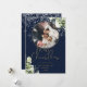 Cartão De Festividades Feliz Natal Floral Neve Dourado e Azul Foto
