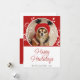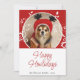 Cartão de Natal Feliz Folhagem Vermelha Nome do Cão Foto. Linda folhagem branca em um fundo vermelho. Personalize o enfeite com a foto do seu cão, nome da família, ano e a mensagem no verso.